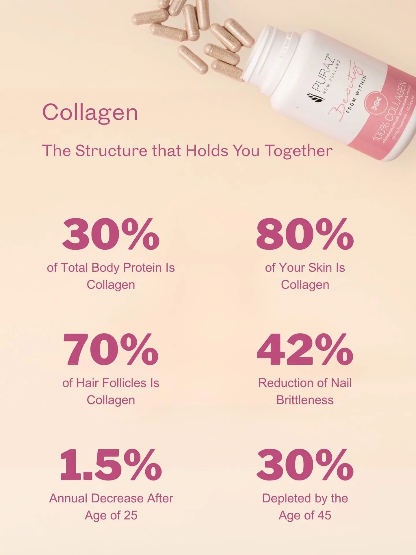 Trust in Puraz’s exceptional quality and unleash your natural beauty from within. Reveal a radiant glow and embrace age-defying benefits with Puraz Collagen Infusion Capsules.