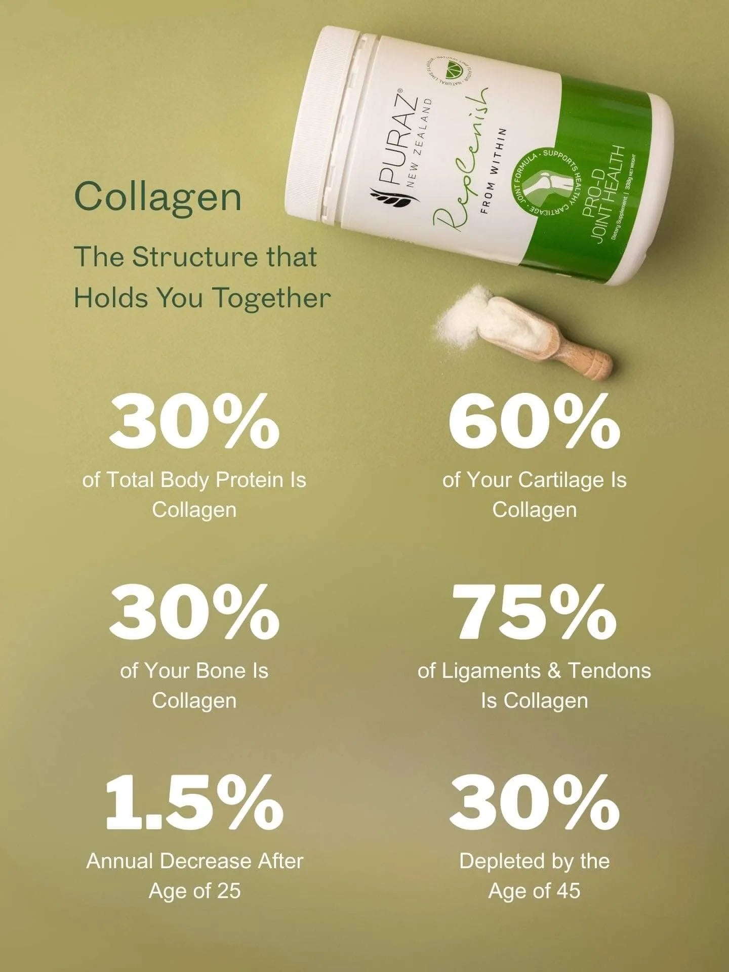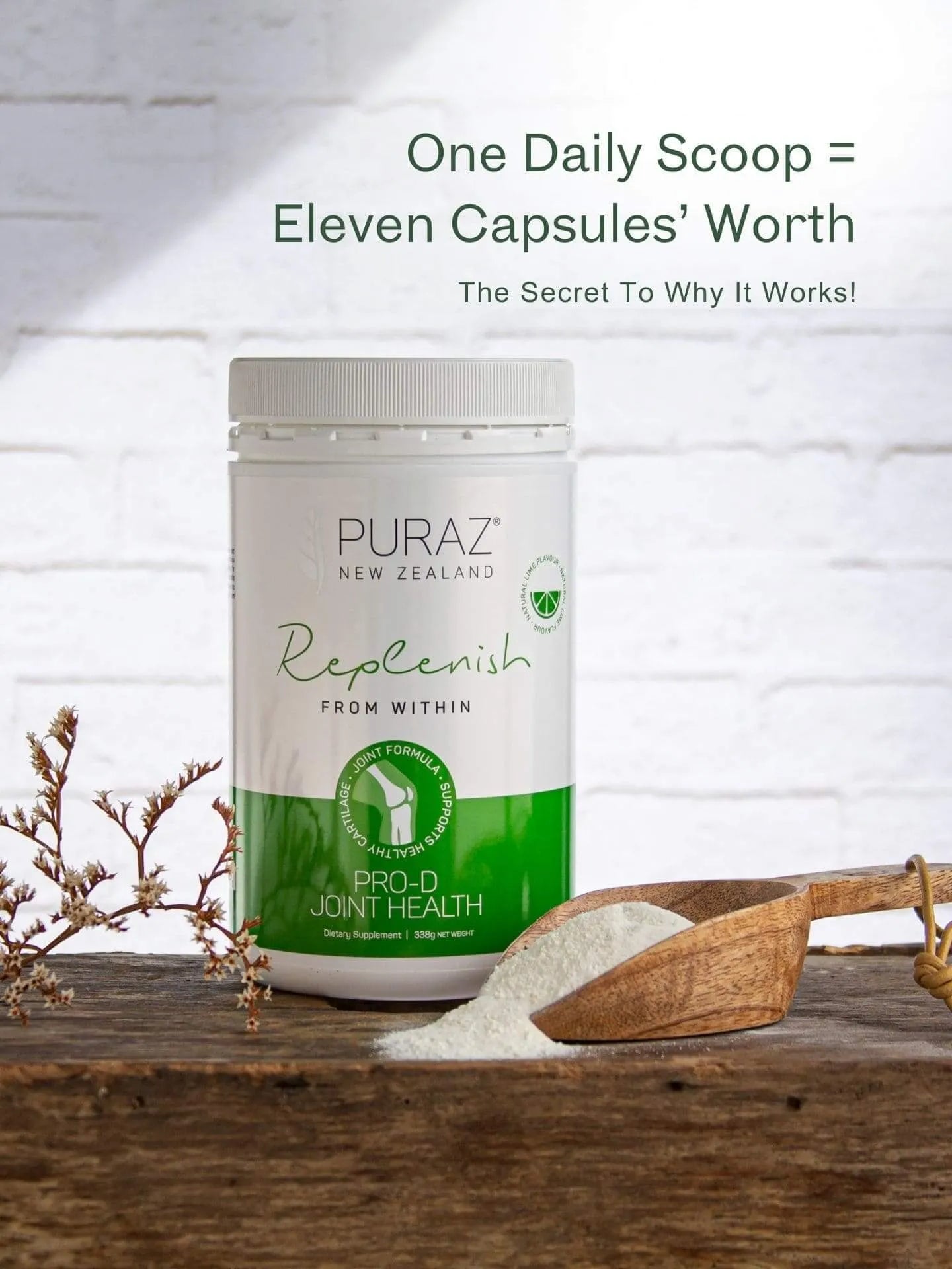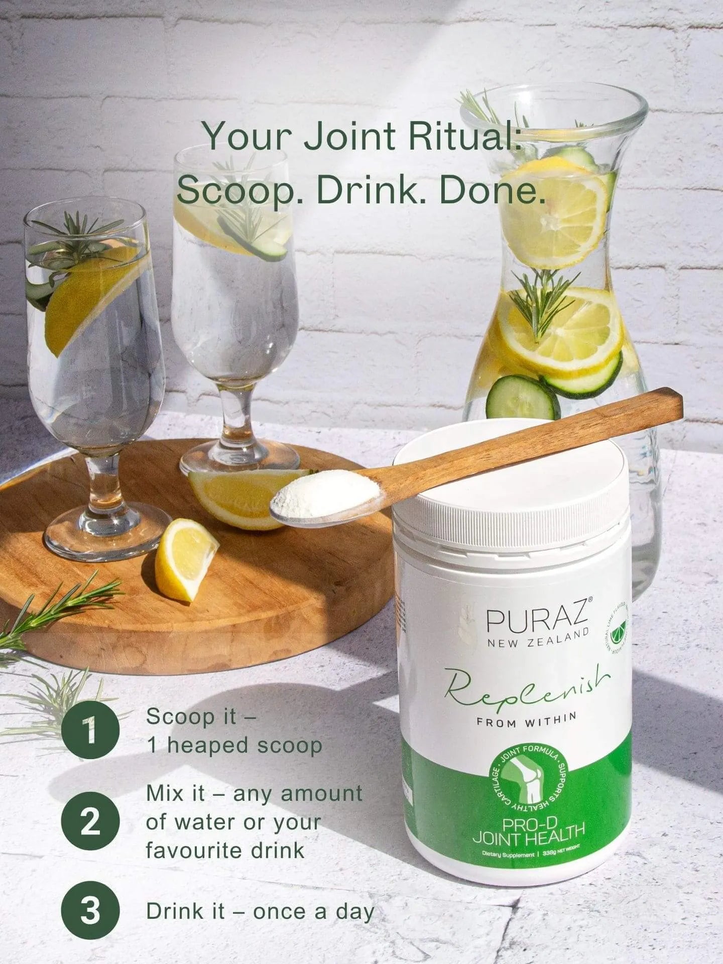 Collagen hydrolysate is an essential ingredient for supporting joint health. It is a processed form of collagen that can be easily absorbed and utilised by the body. When taken as a supplement like Puraz PRO-d, it provides a concentrated dose of collagen to nourish your joints. Scientific studies have shown that collagen hydrolysate supplies the necessary nutrients for cartilage cells to produce collagen and proteoglycans, vital components of cartilage. By providing these building blocks, collagen hydrolysate supports the production of healthy cartilage, contributing to strong and resilient joints. It also promotes joint mobility, flexibility, and overall joint function, enabling an active lifestyle.