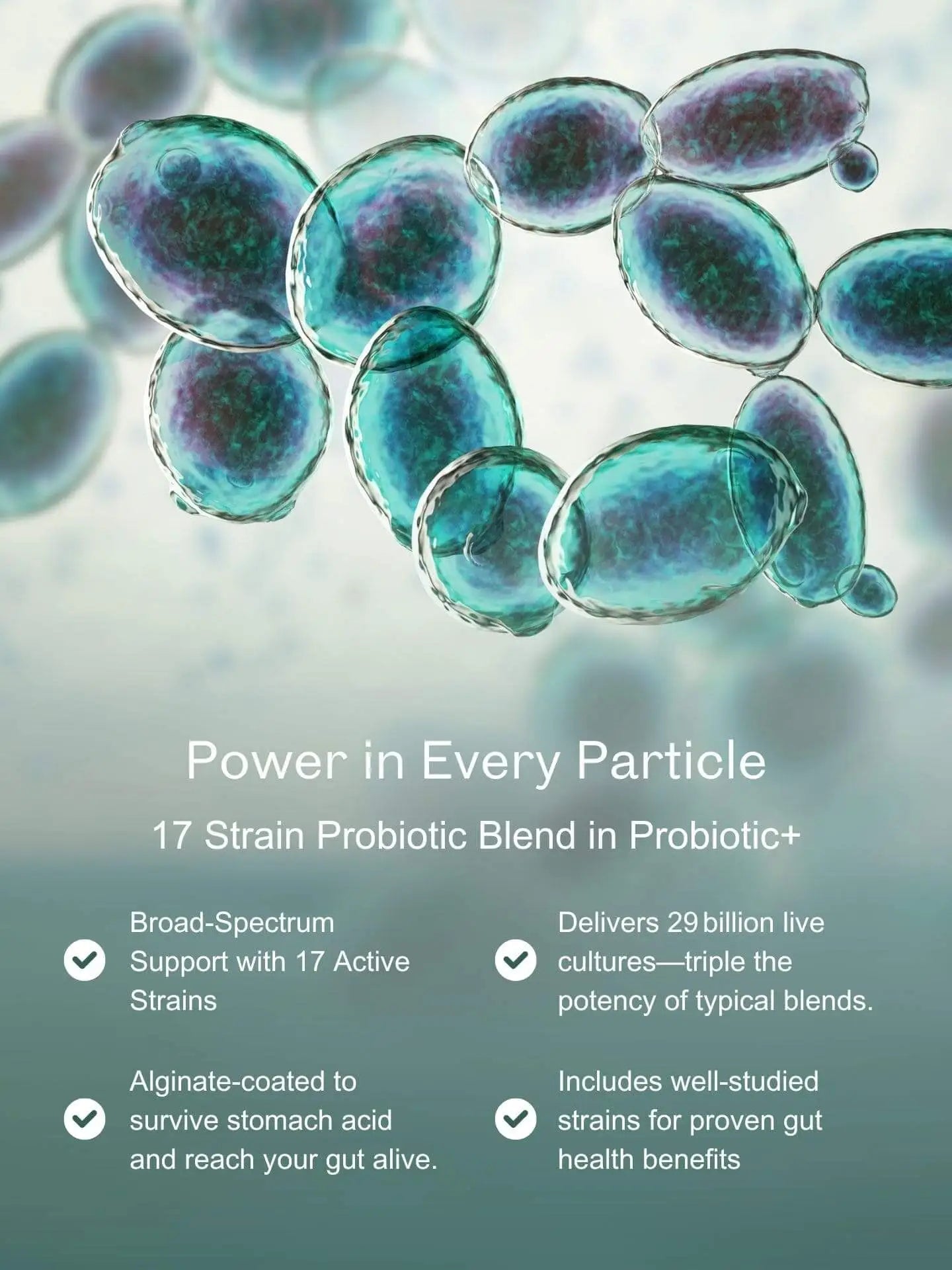 As well as the highly regarded Livaux® and Bacillus coagulans, Puraz Probiotic+ contains an alginate stabilised, high potency, broad spectrum probiotic blend: